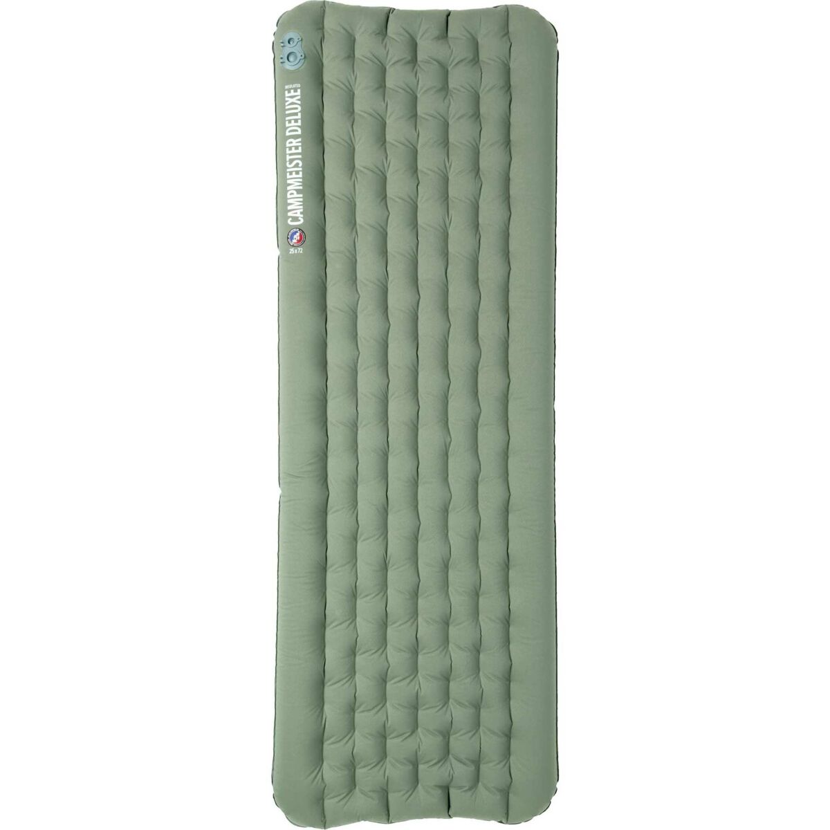 The Big Agnes Campmeister Deluxe is a luxurious four-season air chamber pad featuring an ultra-comfortable, super-quiet quilted stretch top that provides a pillow-soft sleeping surface. With an impressive Insulation R-Value of 7, it is designed for cold backcountry winter nights. Durable 70D recycled nylon fabric and aviation-grade TPU lamination ensure leak protection, combining lightweight, warmth, durability, and packability for ultimate backcountry comfort.